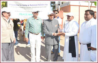 The Peace March passed through the busy business centres of Jodhpur and enroute visited Mosque at Jalori Gate, where it was addressed by Kazi Saheb Mohd. Ayub Shahr Khateeb, and then proceeded to Gurudwara Saheb. At Gurudwara sahib, the entire contingent was served Lungar (Lunch). The officials of Gurudwara Saheb honoured President – FANS and presented “SAROPA”. FANS also presented momento to Sardar Darshan Singh, President of Gurudwara Sahib. The Peace March then arrived at Temple at Public Park. The Peace March finally culminated at the temple after the blessings of Acharya Dr. Govardan Ram Shiksha Shastri.